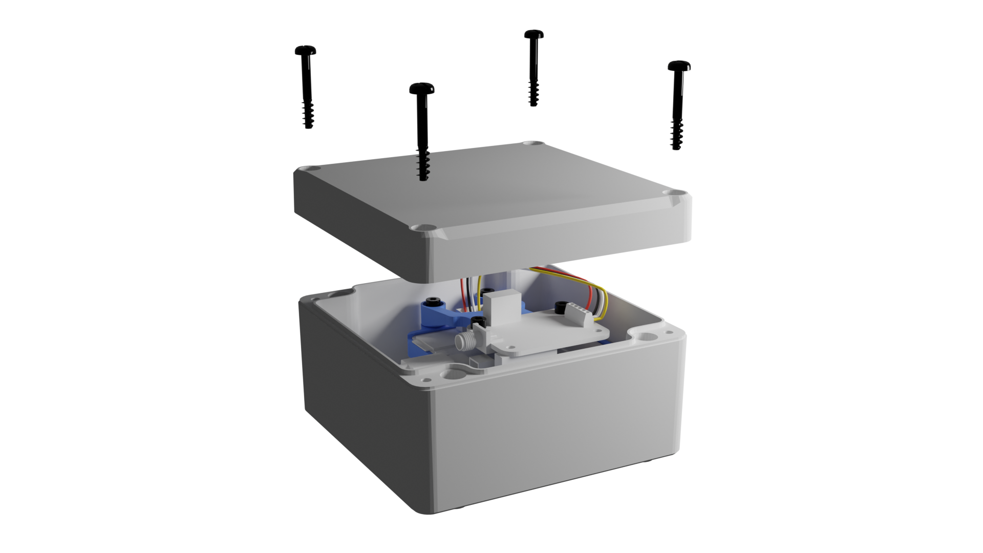 The Smartcitizen water kit is mounted inside a commercial IP BOX to make sure that the enclosure is protected outdoors. This enclosure is very simple, it only contains three 3D-printed models that are easy to print, no supports are needed in any of the pieces.